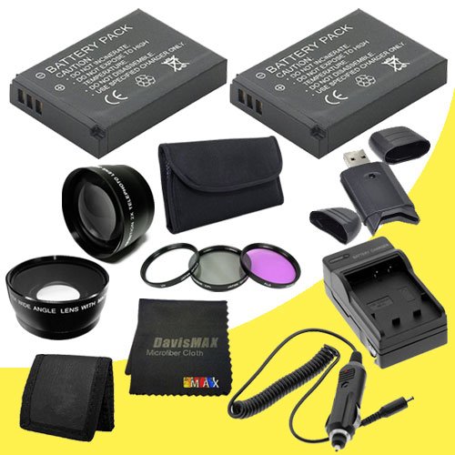 Buy TWO EN-EL20 Replacement Lithium Ion Battery + External Rapid Charger + 40.5mm 3 Piece Filter Kit + Wide Angle Lens + 2x Telephoto Lens + SDHC Card USB Reader + Memory Card Wallet + DavisMAX MicroFiber Cloth for Nikon 1 J1 Digital SLR Camera DavisMAX ENEL20 Battery Bundle Now with